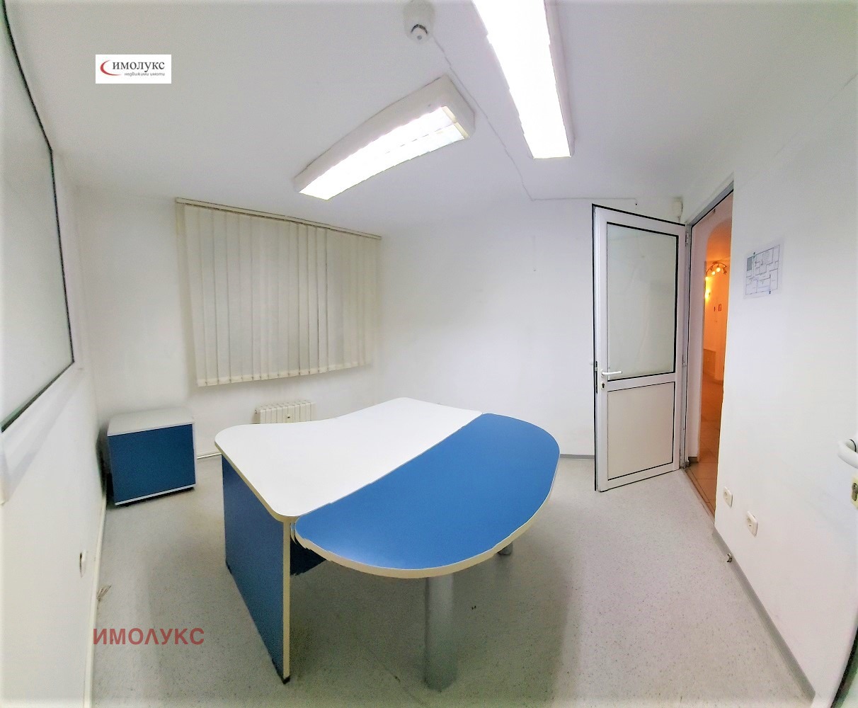Офиса е с ПВЦ дограма, подовете са с гранитогрес, стените с латекс. Всичко е много запазено, необходимо е освежаване. Луминисцентни осветителни тела.