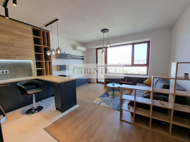 Rentica.bg предлага под наем ДИЗАЙНЕРСКО обзаведен, ЧИСТО НОВ едностаен апартамент находящ се в района на пазар Чаталджа, на пешеходно разтояние до Медицински университет и Икономически университет. Имотът, който Ви предлагаме се намира на ТРИНАДЕСЕТИ етаж в жилищна сграда с отлично поддържани общи части и асансьор. Състои се от СТАЯ с кухненски кът и зона за отдих, обзаведени и оборудвани с изключителна прецизност до най-малкия детайл за удобството и уюта на бъдещите наематели. Кухнята се отдава напълно оборудвана с всички необходими уреди за едно домакинство. Към жилището има още баня с тоалетна, антре и терасa С КРАСИВА ГРАДСКА ПАНОРАМА. Отоплението е с климатик.