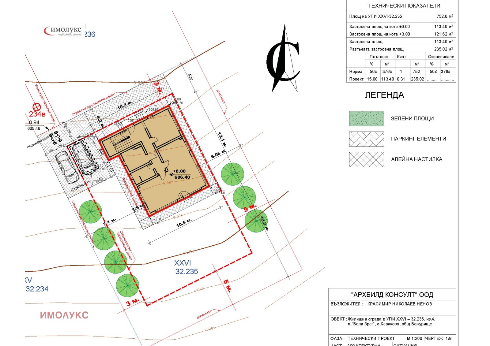 Разпределение: има четири самостоятелни спални, просторен хол със светла кухня, три бани с тоалетни, техническо помещение, тераса и около 60 кв.м. подпокривно пространство с капандури, което е като бонус, извън общата площ от 235 кв.м. на двата основни етажа;