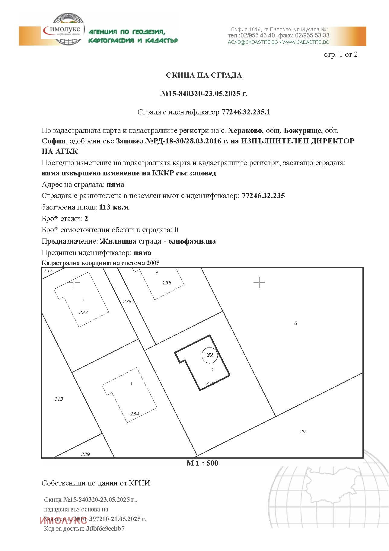 Къщата е с целодневно слънцегреене, на няколко минути от главния път София - Калотина, в кв. Бобен на с. Хераково, общ. Божурище;