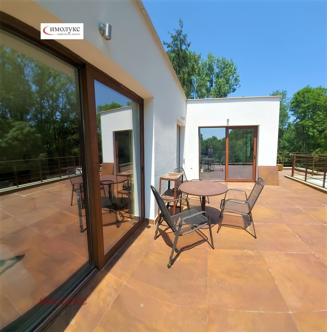 = останалото обширно пространство е развито в кухненски бокс, трапезария и дневна, в която до действащата камина е обособена просторна ниша, около 10 кв.м., която може да се използва за кабинет или при подходящо обзавеждане - място за индивидуален отдих и библиотечен кът;