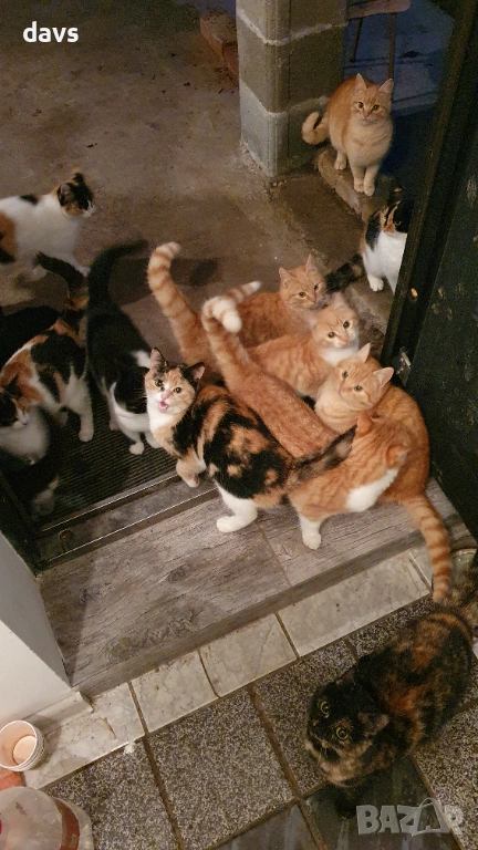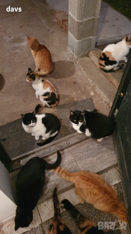 На общата снимка съм отбелязала пола им, на чисто рижавите и едното черно бяло не мога да определя със сигурност. Ще се опитам да направя още снимки. Колажите са с по-стари снимки, правени преди 4 месеца, когато котетата бяха по-малки. За бялото има кандидат осиновител.