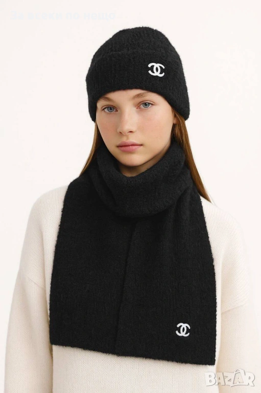 Chanel Комплект Зимен Шал И Зимна Шапка Шанел - Налични Различни Цветове Код SK525 → Обява 53050433