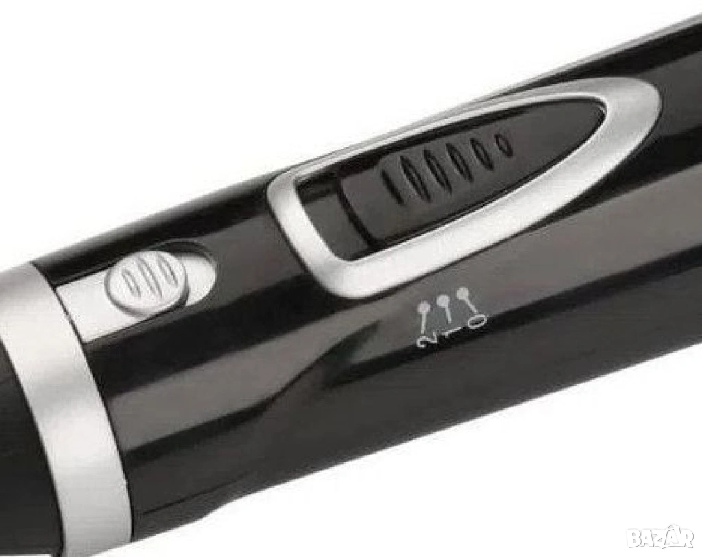 36 МЕСЕЦА ГАРАНЦИЯ; Мощност: 400W; Вид на Четката: Четка с къс твърд косъм (25 x 50 mm); Нива на Отопление: 2; Нива на Скорост: 2; Въртящ Се Кабел: Да; Аксесоари: 1 четка; Цвят: Черен/сребрист; Ниво на шум: 73 dB; Главно Напрежение: 220-240V; Размери: 20 x 5 x 5 cm; Тегло: 0,3 кг; Дължина на Кабела: 170 см.