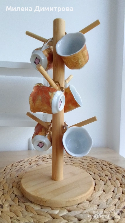 *** В тази обява се предлага единствено бамбуковата поставка от снимките. Аранжировката с чаши е с илюстративна цел.