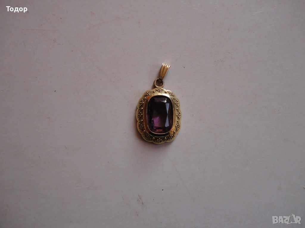 Позлатен медальон колие с аметист Amerik K@L → Обява 53050935