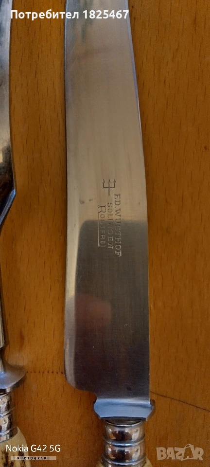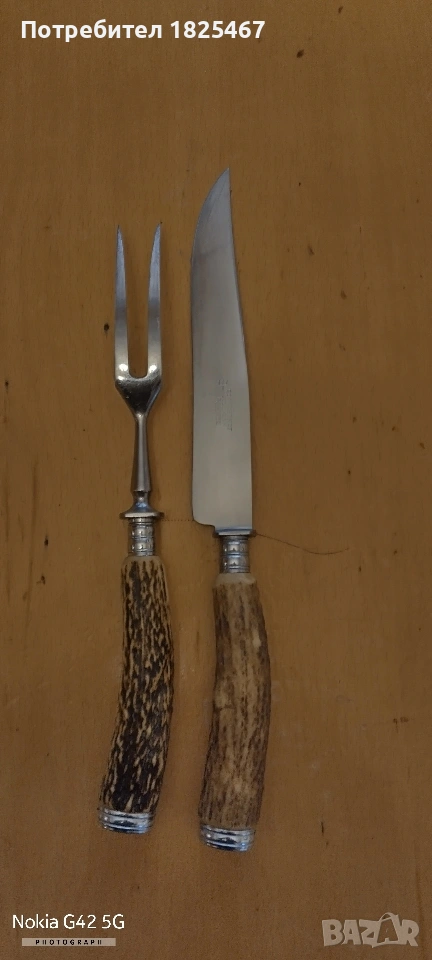 Продавам к-т нож и вилица за месо с дръжки от еленов рог wusthof -solingen.