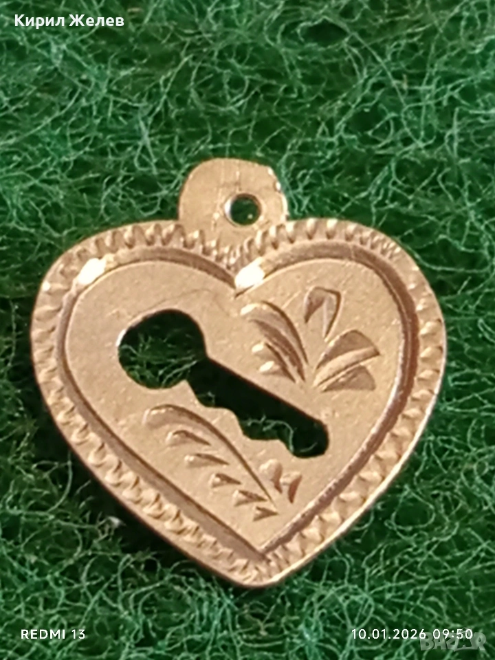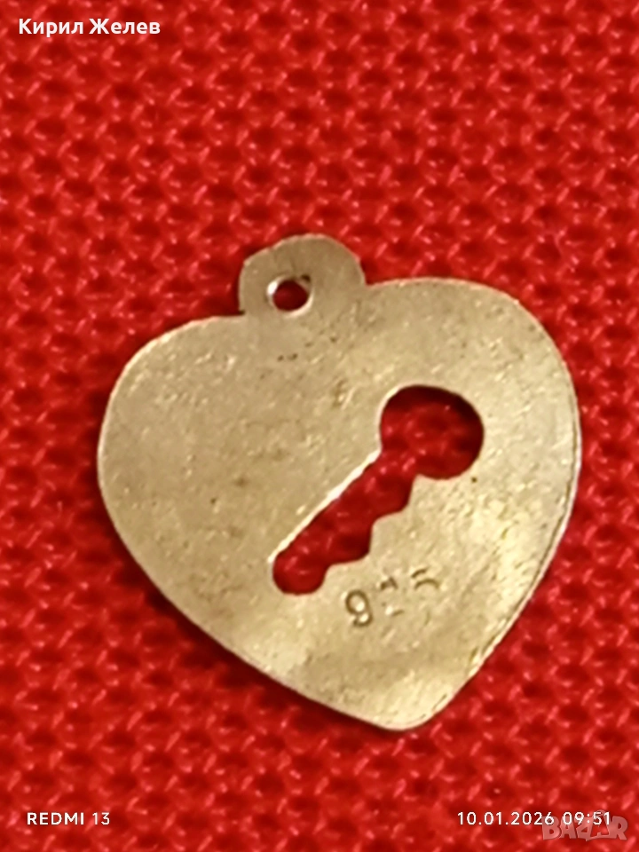 Сребърен медальон във формата на сърце ❤️ с апликация на ключ романтичен подарък 52648