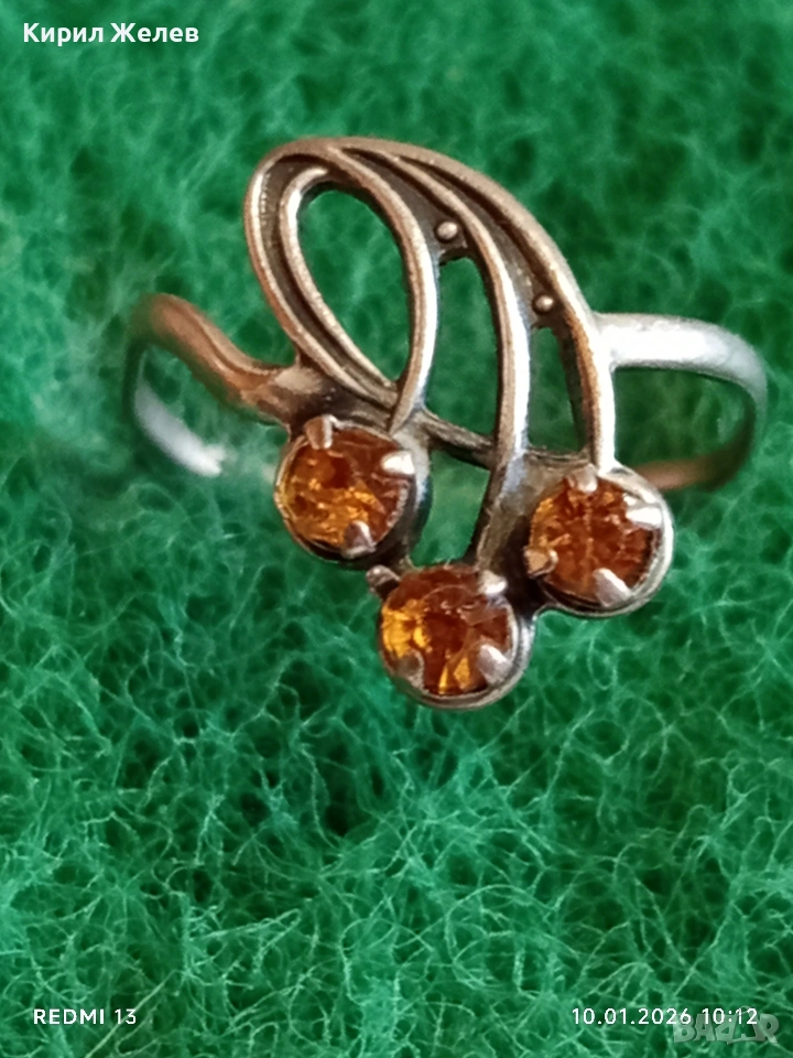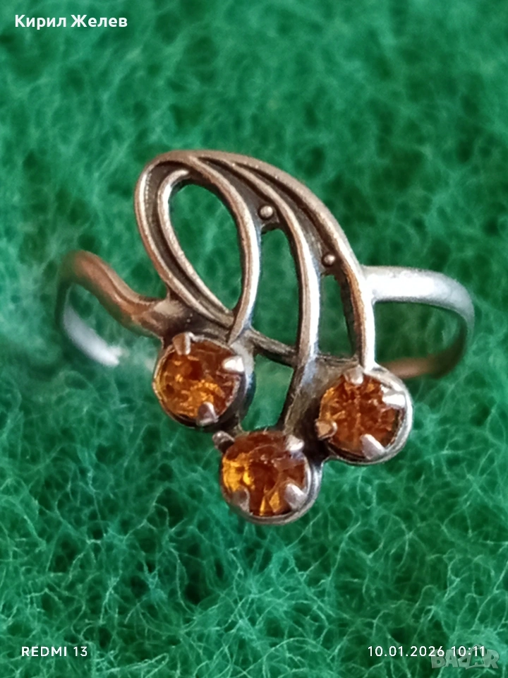 Сребърен пръстен с ЦИТРИН флорален мотив Арт Нуво стил ювелирна изработка 52792
