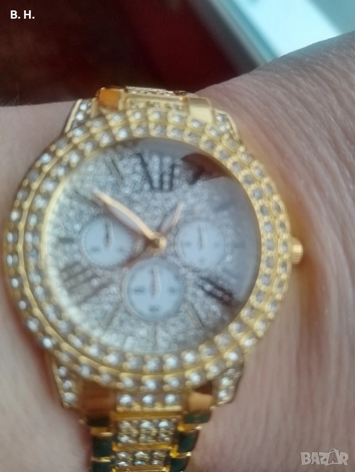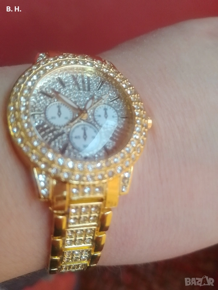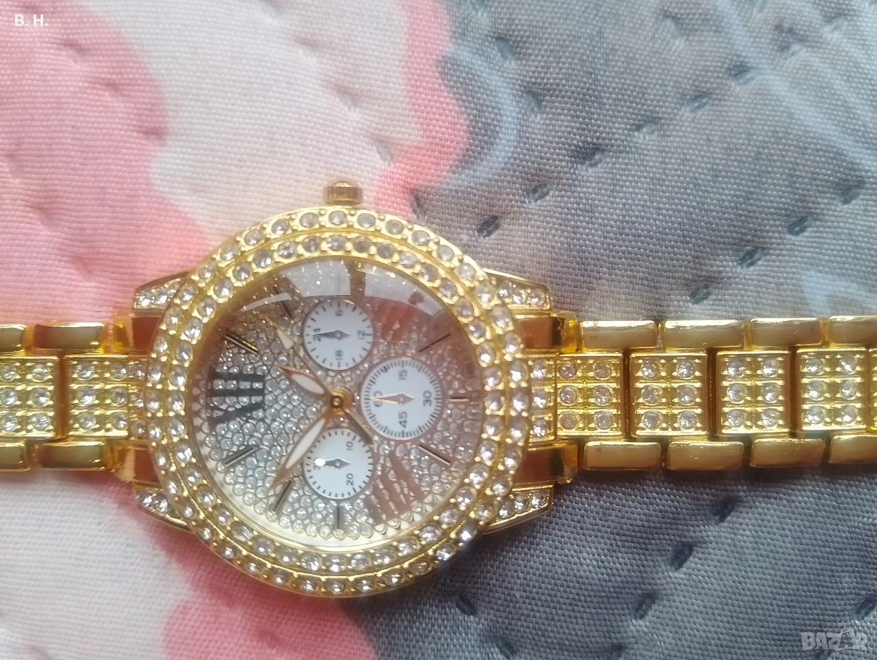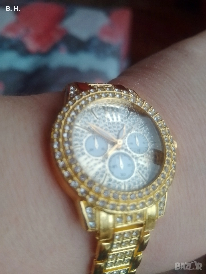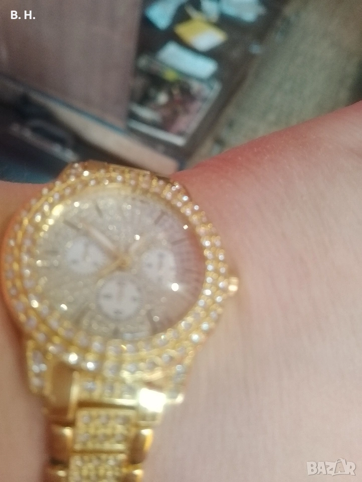 Луксозен дамски часовник. В златен цвят. Със светещи елементи.
