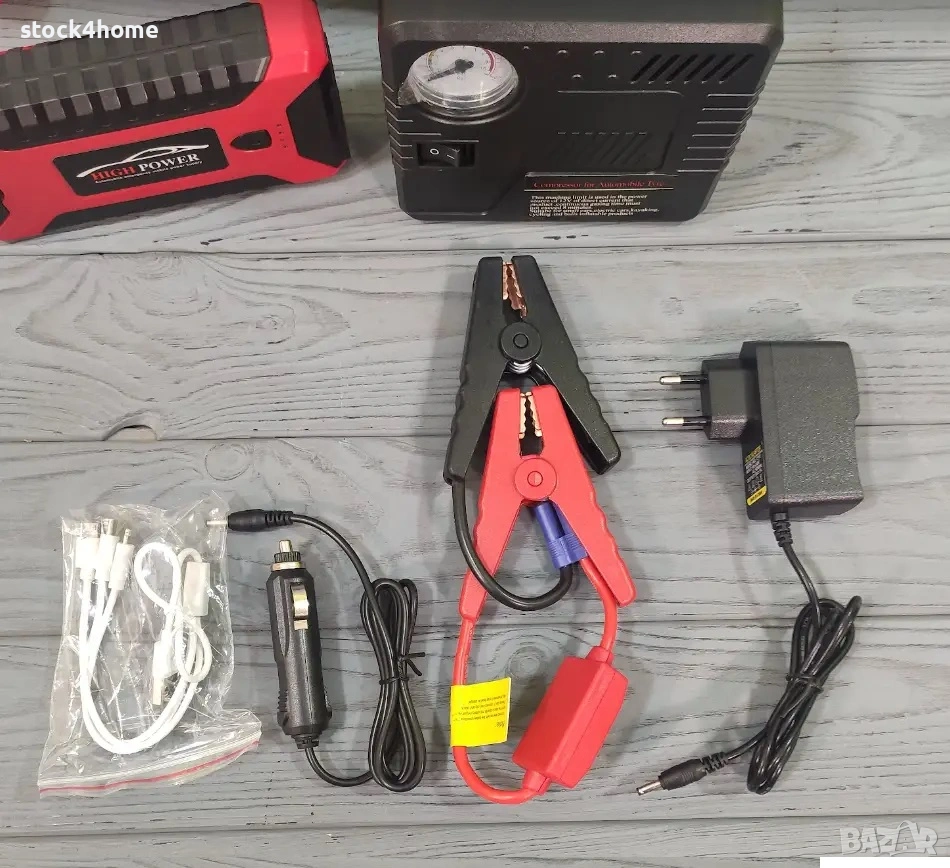 Автомобилен стартер: Може да стартира вашия автомобил дори при напълно изтощен акумулатор, благодарение на мощната си батерия и компактни кабели.