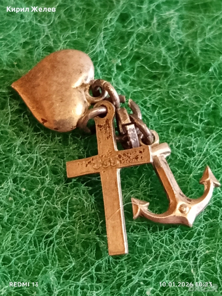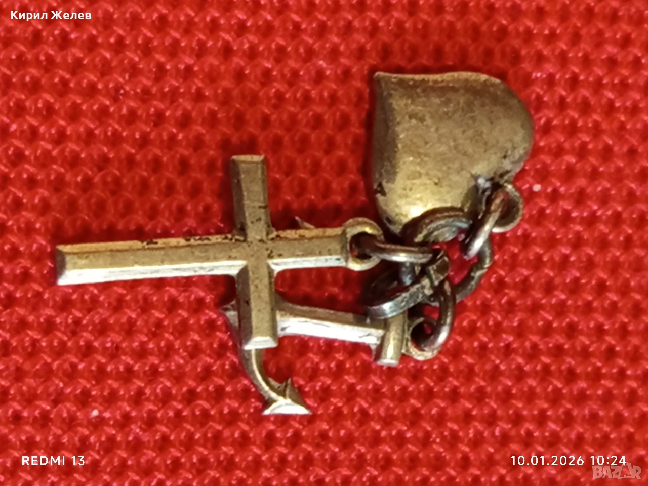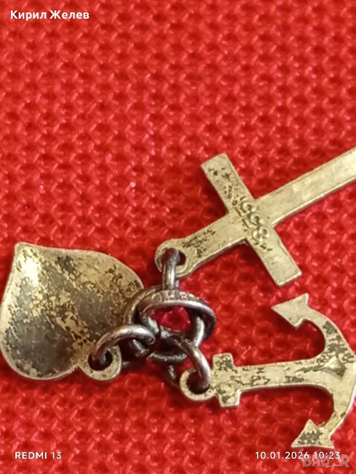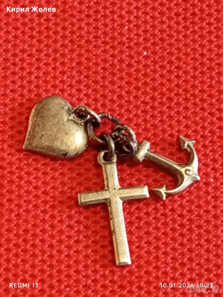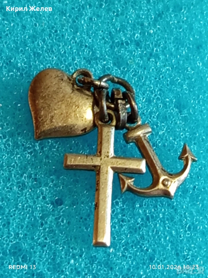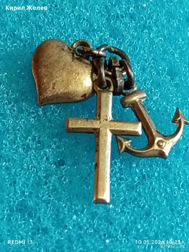 Винтидж сребърна висулка три елемента СЪРЦЕ,КОТВА и КРЪСТ много красив стилен дизайн 52598