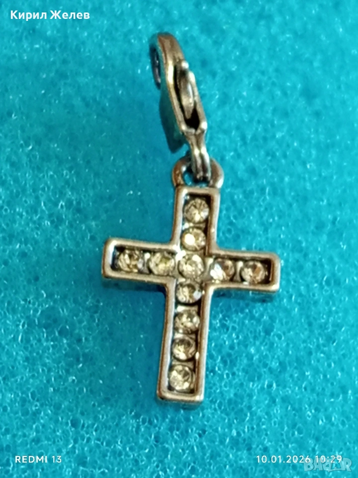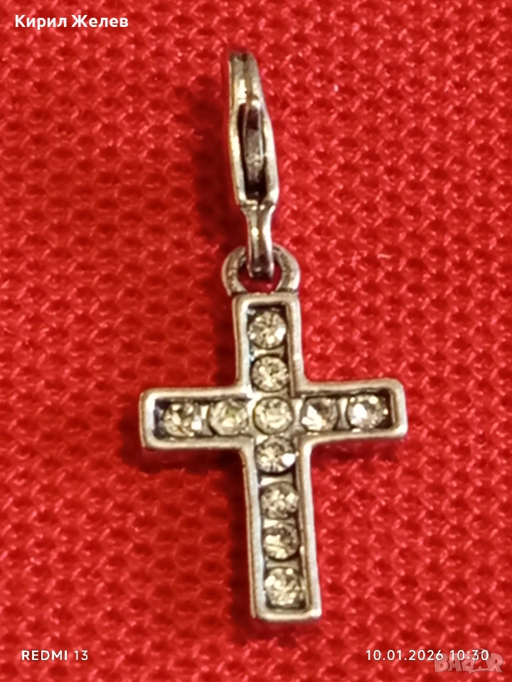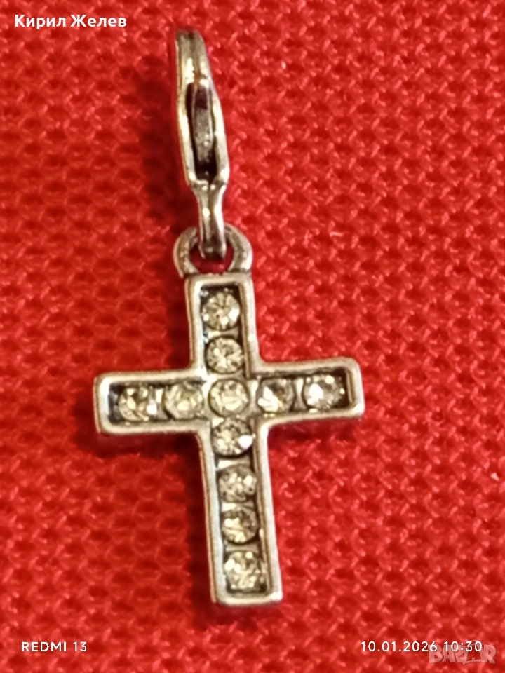 Сребърен медальон с инкрустирани кристали стилен дизайн много красив 52616