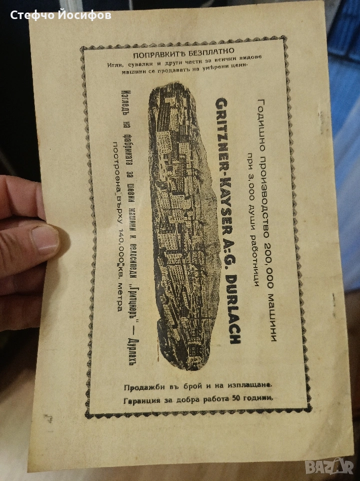 Състоянието е видно,запазена със следи от времето! Немска от царско време! С упътване! За шевна машина!