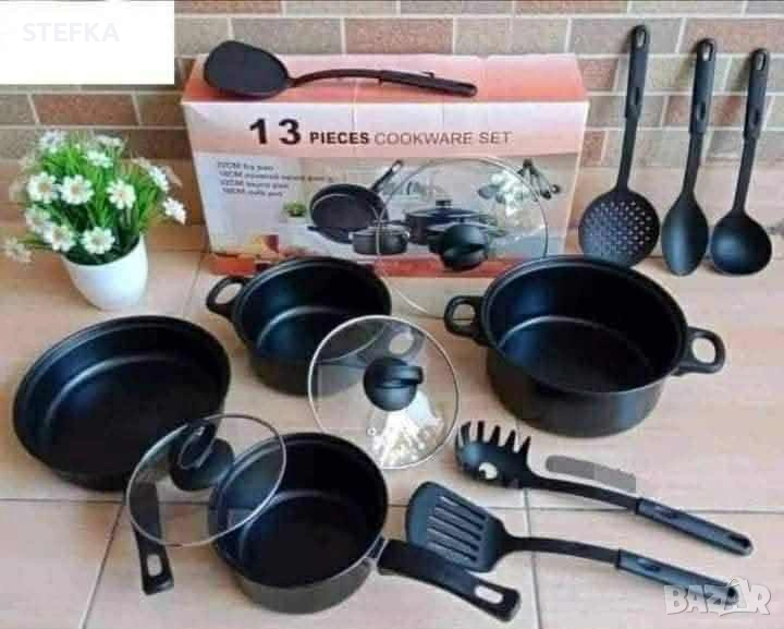 Комплект съдове за готвене от 13 части,незалепващо покритие,за използване на индукционни котлони и печки