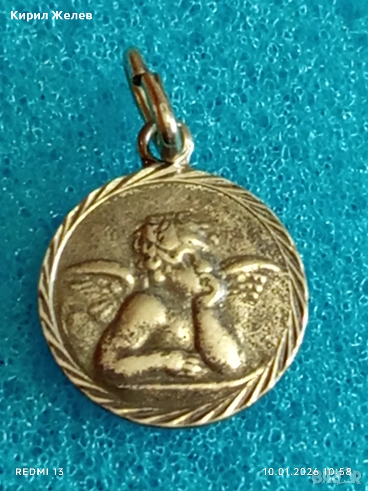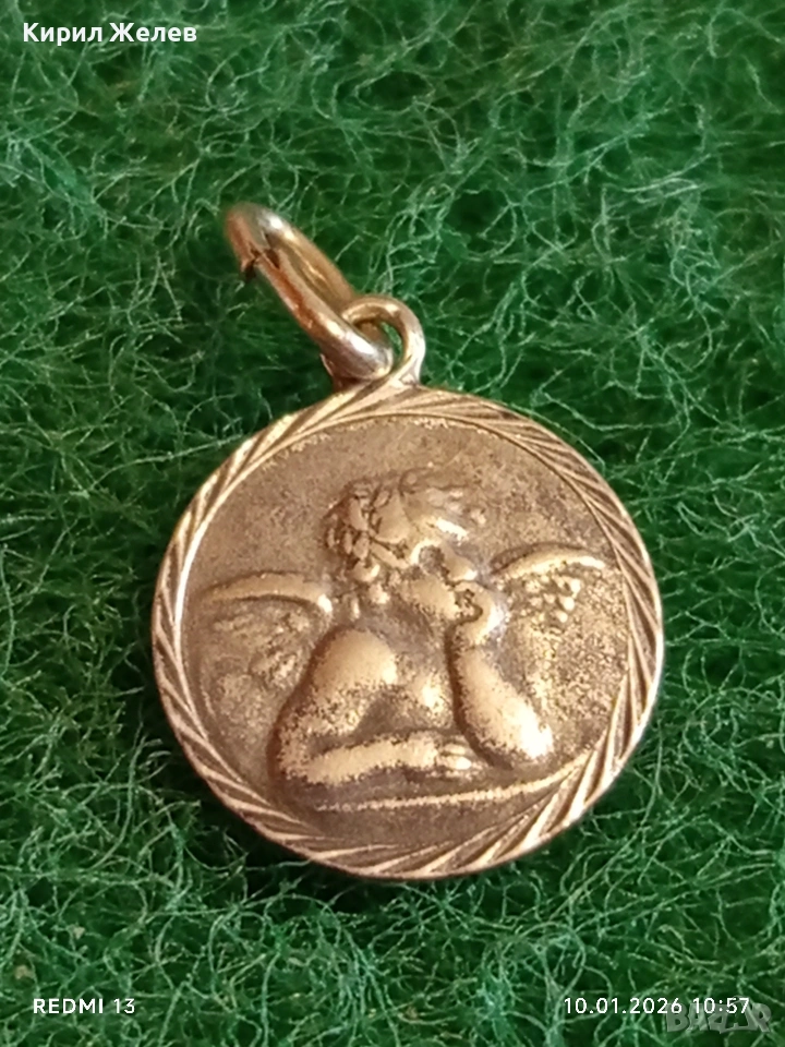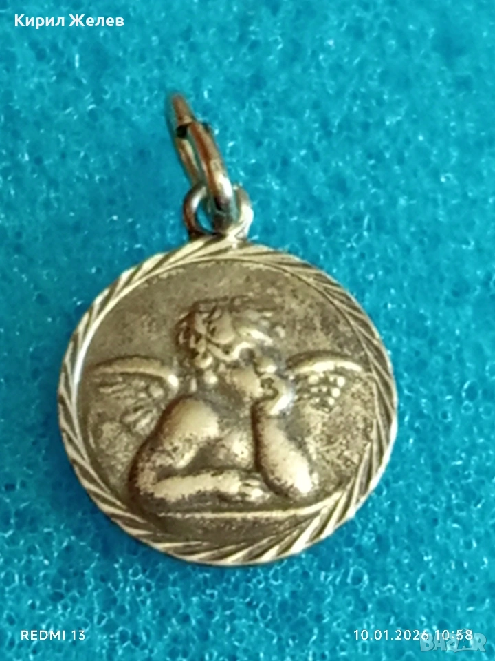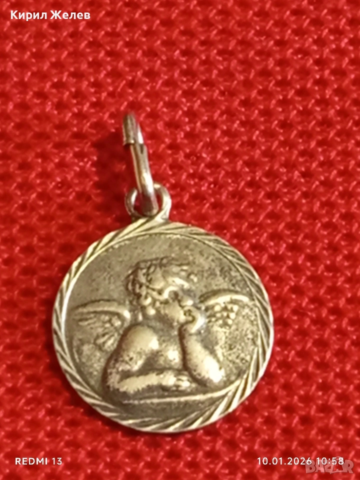 Сребърен медальон замисления ангел на Рафаело "Сикстинската Мадона" 43121