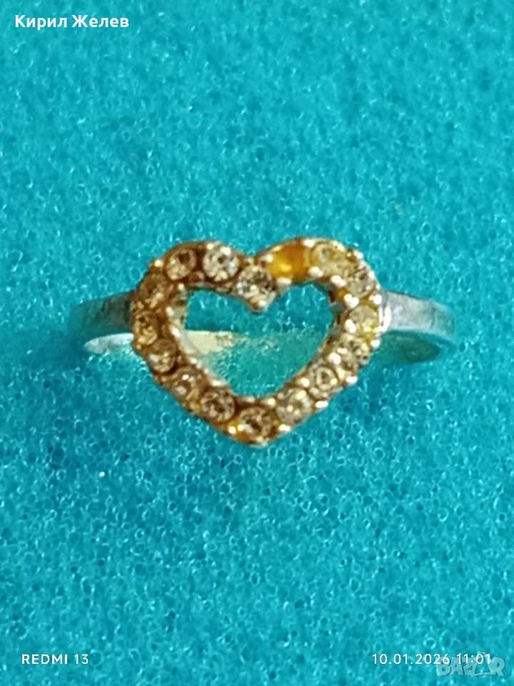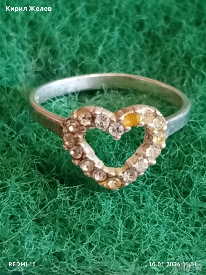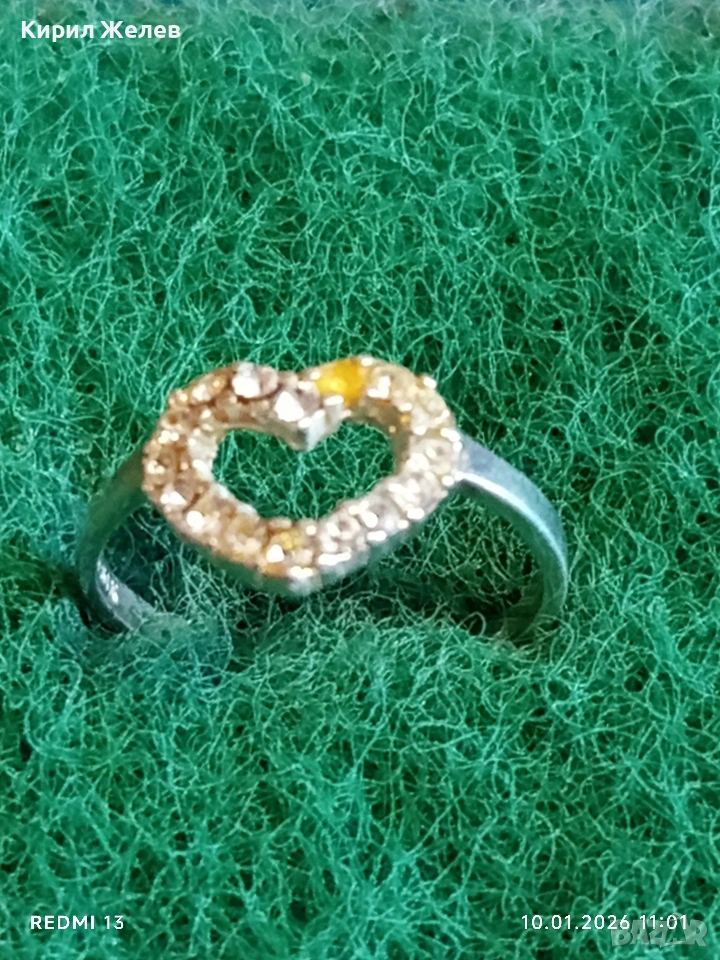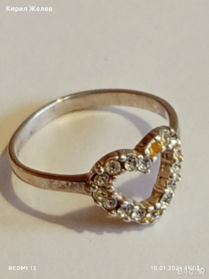 Сребърен пръстен във формата на сърце с инкрустирани кристали МОЙСАНИТ много красив 52798