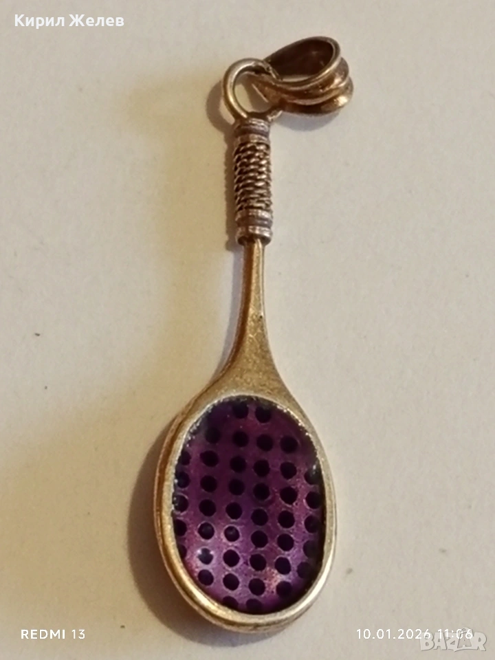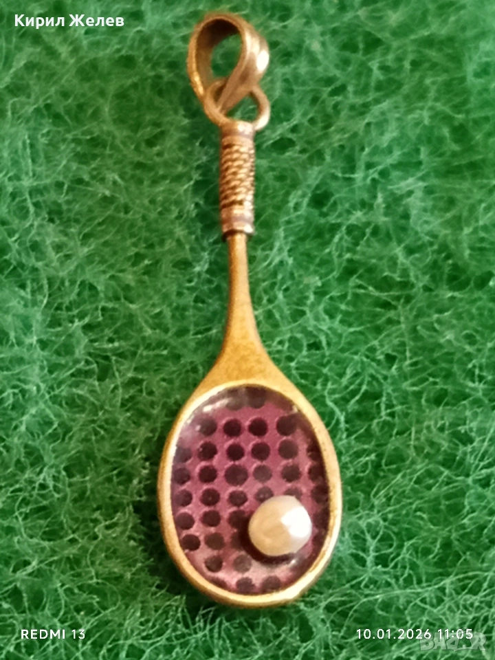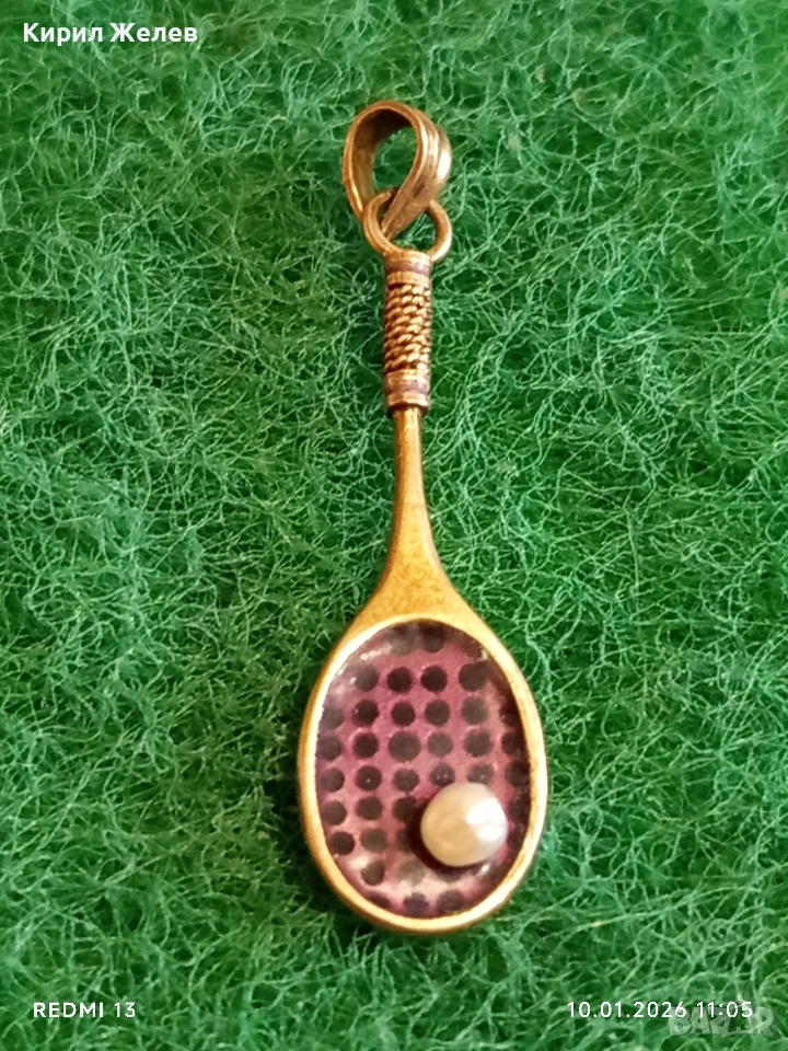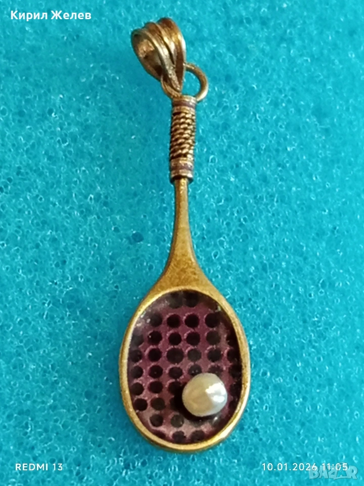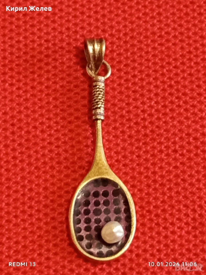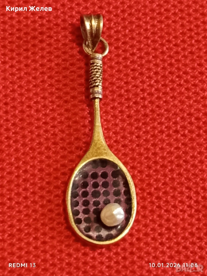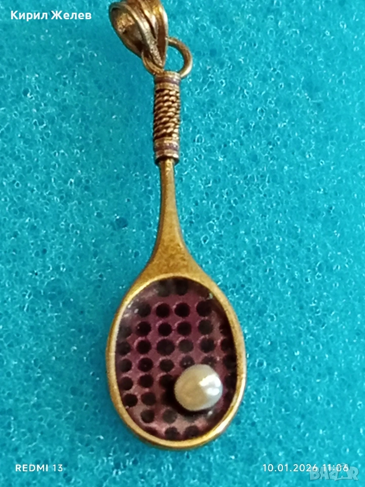 Сребърен медальон във формата на тенис ракета с Перла красив подарък за спортисти 52556
