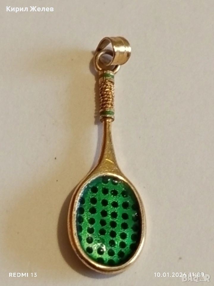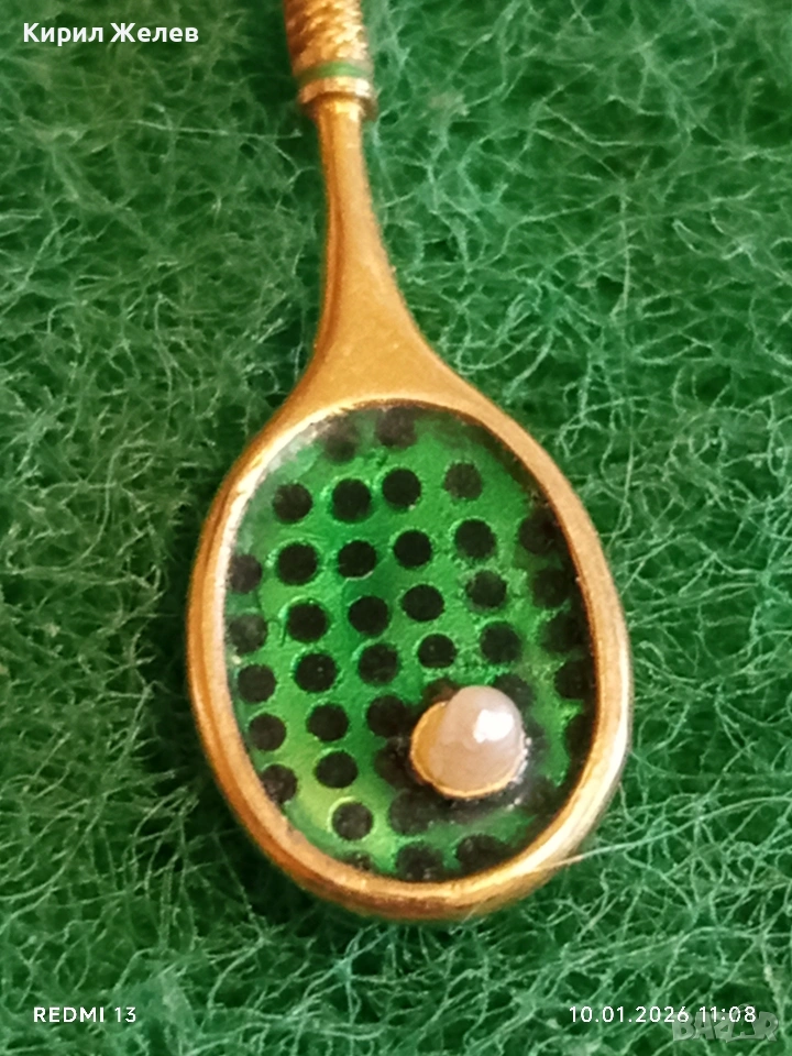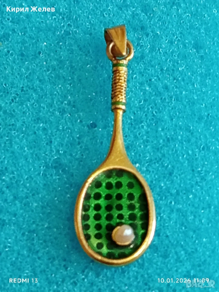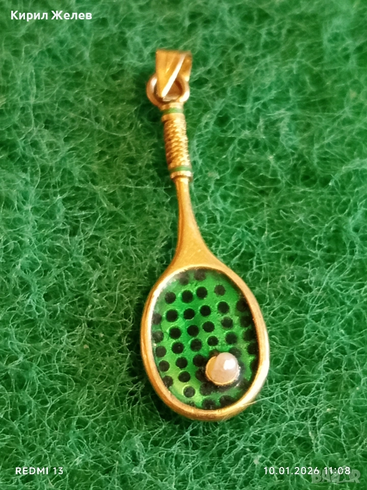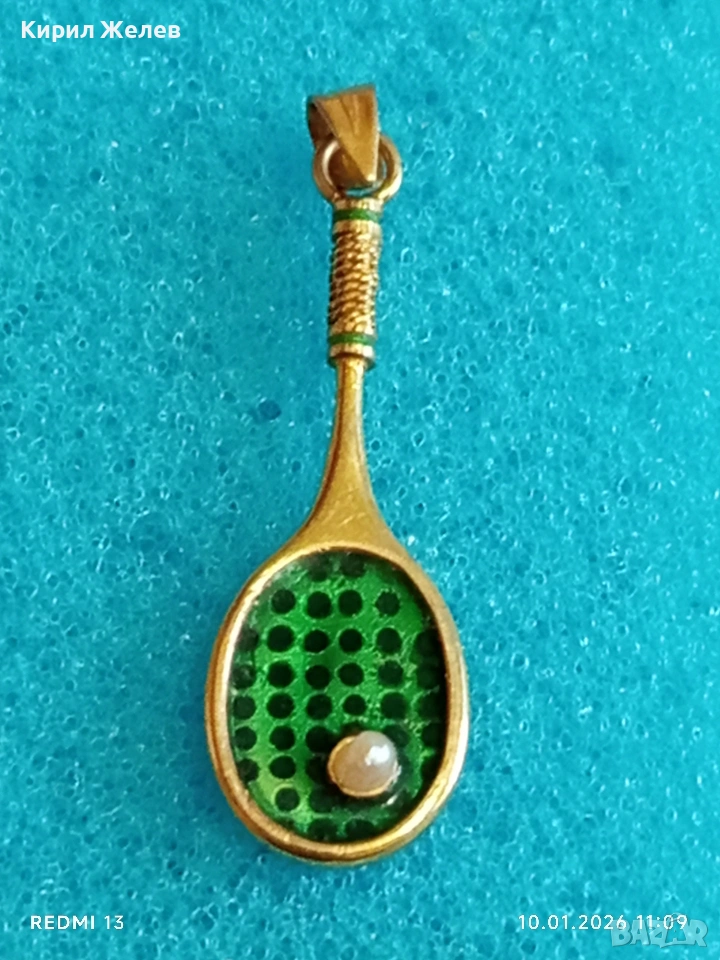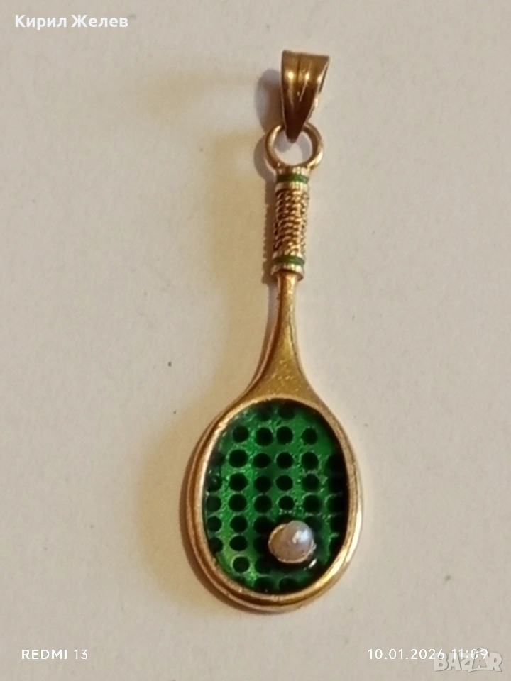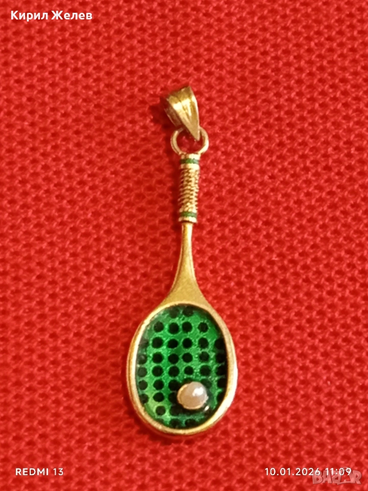 Сребърен медальон във формата на Тенис ракета с Перла красив подарък за спортисти 22057