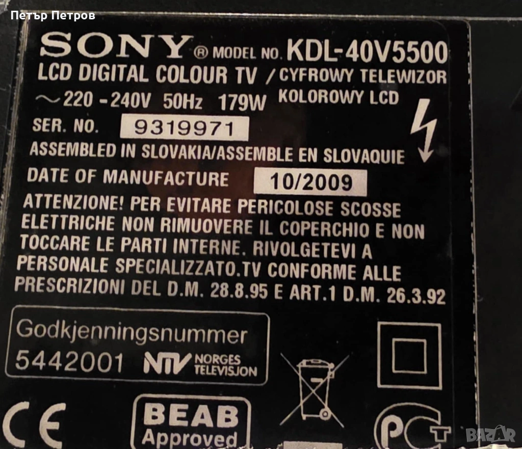 Sony BRAVIA 40''  Full HD LCD телевизор mod.KDL-40V5500HD-Безупречен!, снимка 1 - Телевизори - 53051895 Sony BRAVIA 40''  Full HD LCD телевизор mod.KDL-40V5500HD-Безупречен!, снимка 2 - Телевизори - 53051895 Sony BRAVIA 40''  Full HD LCD телевизор mod.KDL-40V5500HD-Безупречен!, снимка 3 - Телевизори - 53051895 Sony BRAVIA 40''  Full HD LCD телевизор mod.KDL-40V5500HD-Безупречен!, снимка 4 - Телевизори - 53051895 Sony BRAVIA 40''  Full HD LCD телевизор mod.KDL-40V5500HD-Безупречен!, снимка 5 - Телевизори - 53051895 Sony BRAVIA 40''  Full HD LCD телевизор mod.KDL-40V5500HD-Безупречен!, снимка 6 - Телевизори - 53051895 Sony BRAVIA 40''  Full HD LCD телевизор mod.KDL-40V5500HD-Безупречен!, снимка 7 - Телевизори - 53051895 Sony BRAVIA 40''  Full HD LCD телевизор mod.KDL-40V5500HD-Безупречен!, снимка 8 - Телевизори - 53051895 1/8