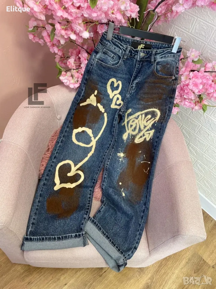 Дънки LFS Golden Hearts 1016 30.63€ (59.91лв.) Материя: Деним със средна еластичност ( 74% памук, 25% полиестър, 1% еластан ) Кройка: Кройката е с прави, широки крачоли, издължаваща, средна към висока талия, ръчно рисувни #LFS Стилистите съветват: Любима кройка и стилен цвят, от които не можем да свалим очи. Точно тези са със средна към висока талия, прави с издължаващ ефект! Излишно е да казваме, че са в графа #musthave, но ако все пак се чудите дали имате нужда от тях и с какво ще ги съчетаете, казваме Ви – да, имайте ги и ги носете смело с всичко в гардероба си от ризи до дантелени блузи или oversize тениски. Дължина: Цяла дължина 110 см, дължина от вътрешната част на крачола 80 см Размер на снимката – S