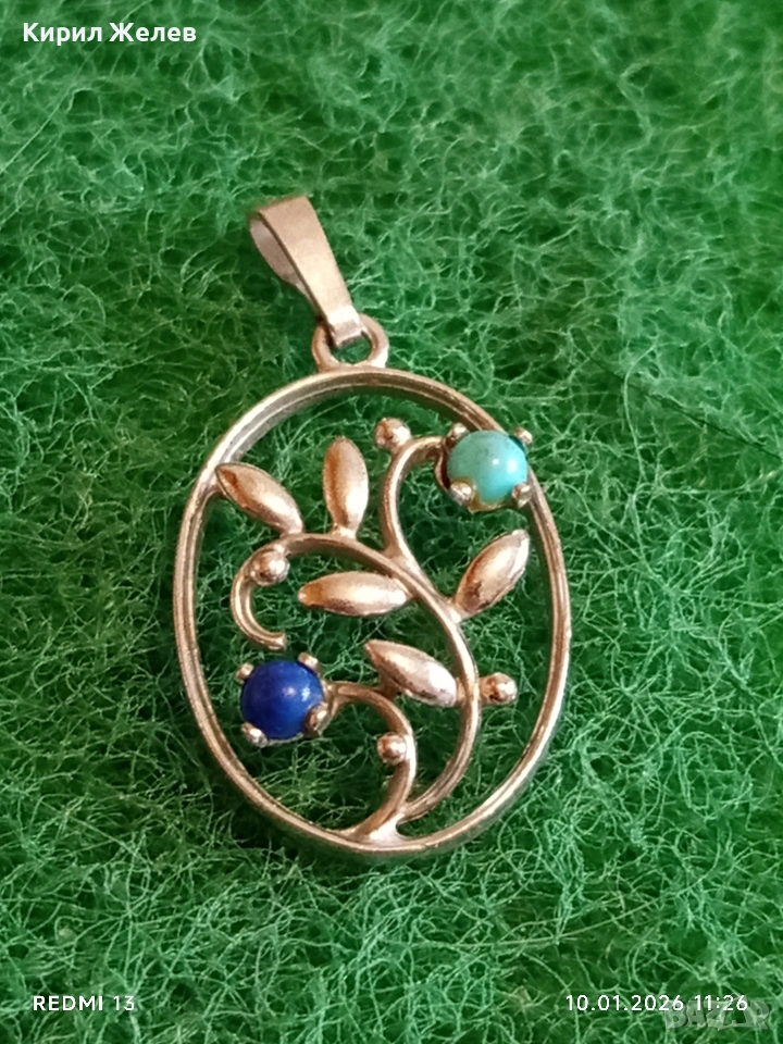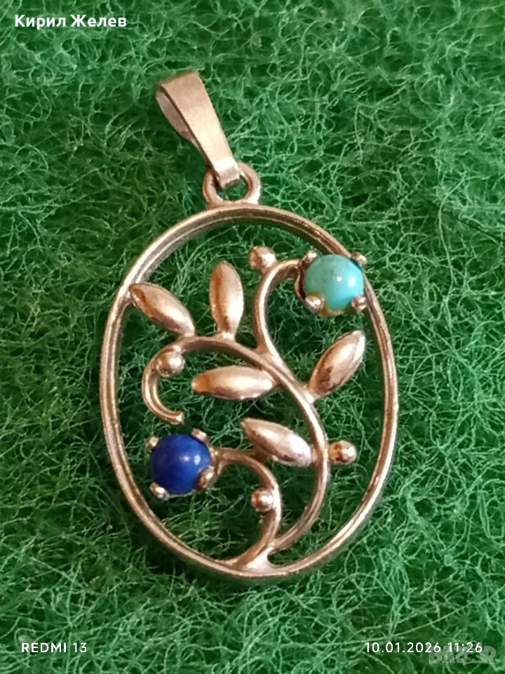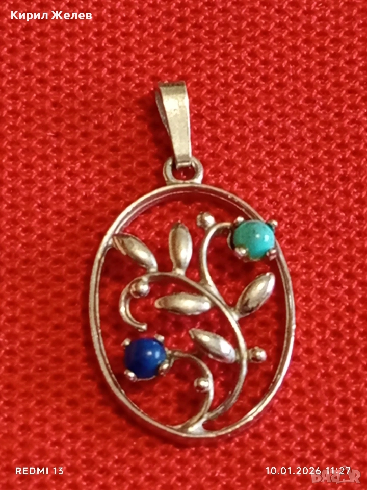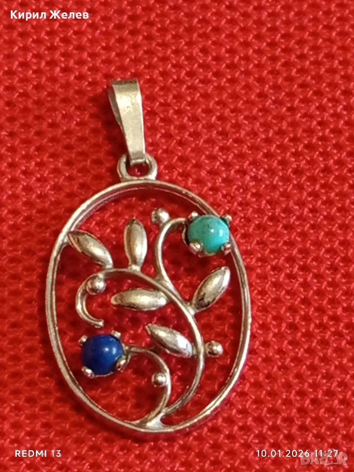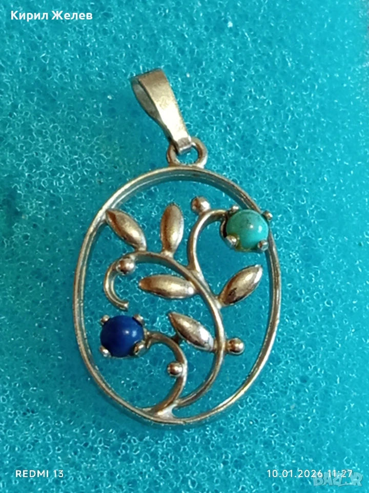 Сребърна висулка с Тюркоаз и Лапис Лазули елегантен стилен дизайн ювелирна изработка 52623