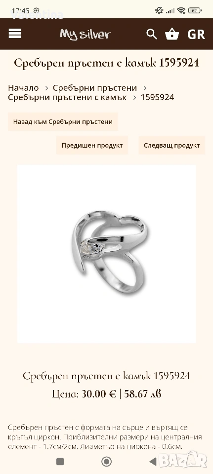 Сребърен пръстен → Обява 53052340