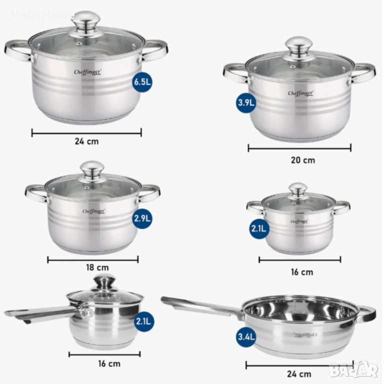 Солидна и издръжлива конструкция: Съдовете Cheffinger в този комплект са изработени от висококачествени материали, осигуряващи изключителна издръжливост и дълготрайна работа.