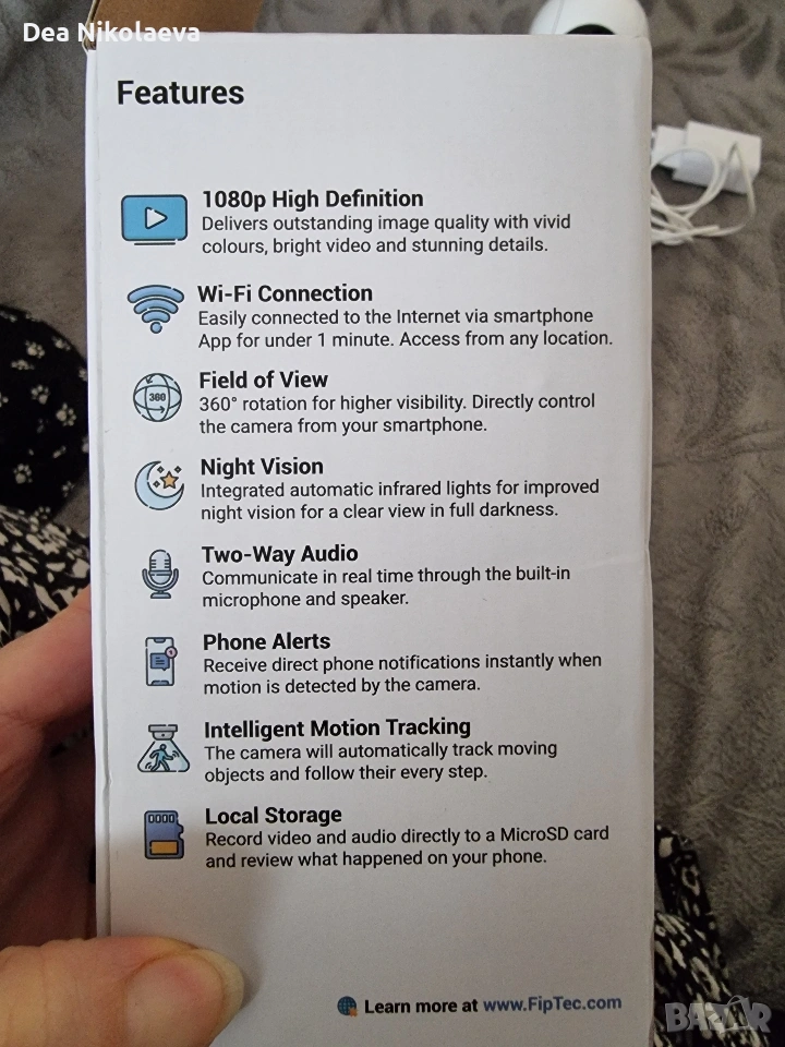 Смарт Бебефон FipTec, WiFi, Full HD, Двупосочно Аудио, Алармиране При Движение и Звук, Нощно Виждане и Управление от Android, Apple или Компютър