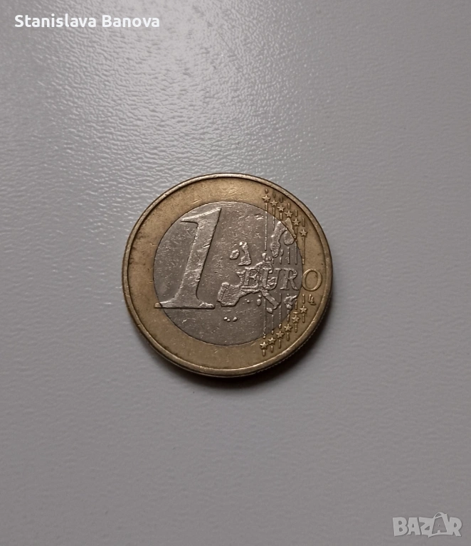 Австрийска евро монета от 1 евро от 2002г. с Моцарт,с грешки → Обява 53053128