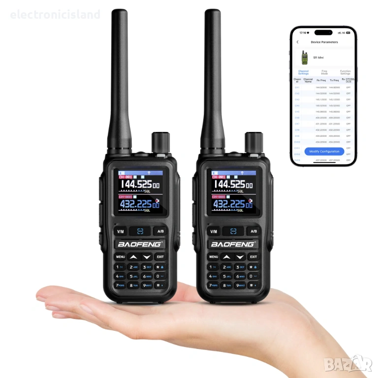 Комплект 2 броя радиостанции уоки токи BAOFENG UV-5R Mini