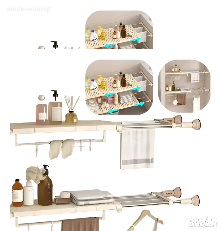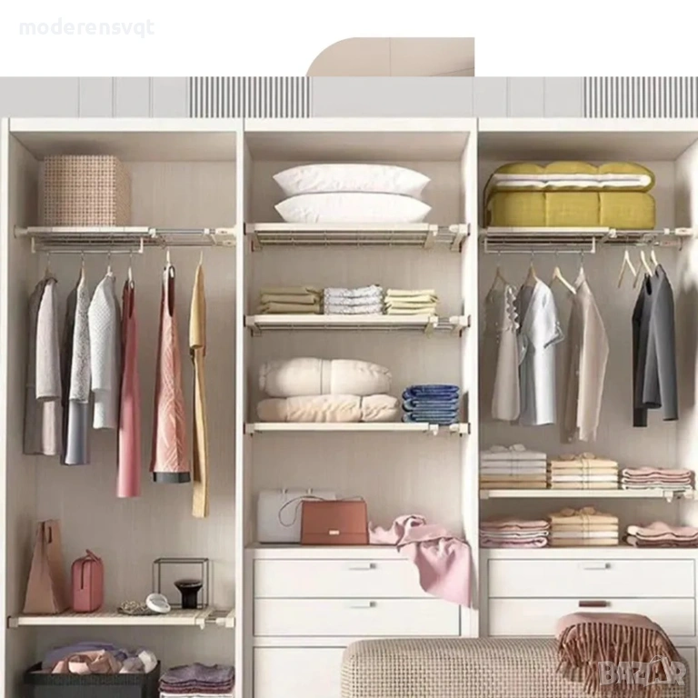 Идеален за създаване на допълнителни рафтове , разделяне на дрехи, кърпи, кухненски аксесоари или почистващи препарати. Неутралният бял цвят се интегрира лесно във всеки декор.