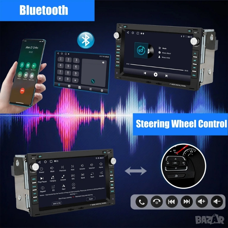 7. Bluetooth: Може да възпроизвежда стерео музика чрез Bluetooth от телефона си. Поддръжка за изтегляне на телефонна книга. Поддръжка за търсене в телефонния указател. За функция за разговори има и вграден микрофон.