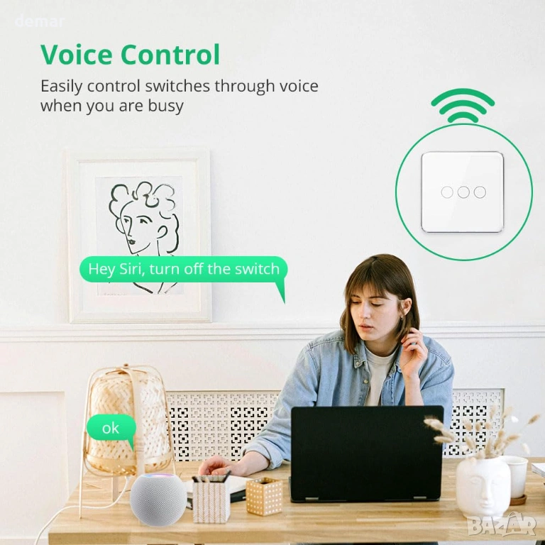 Интелигентен ключ за осветление Matter Over WiFi, съвместим с Apple Home и SmartThings