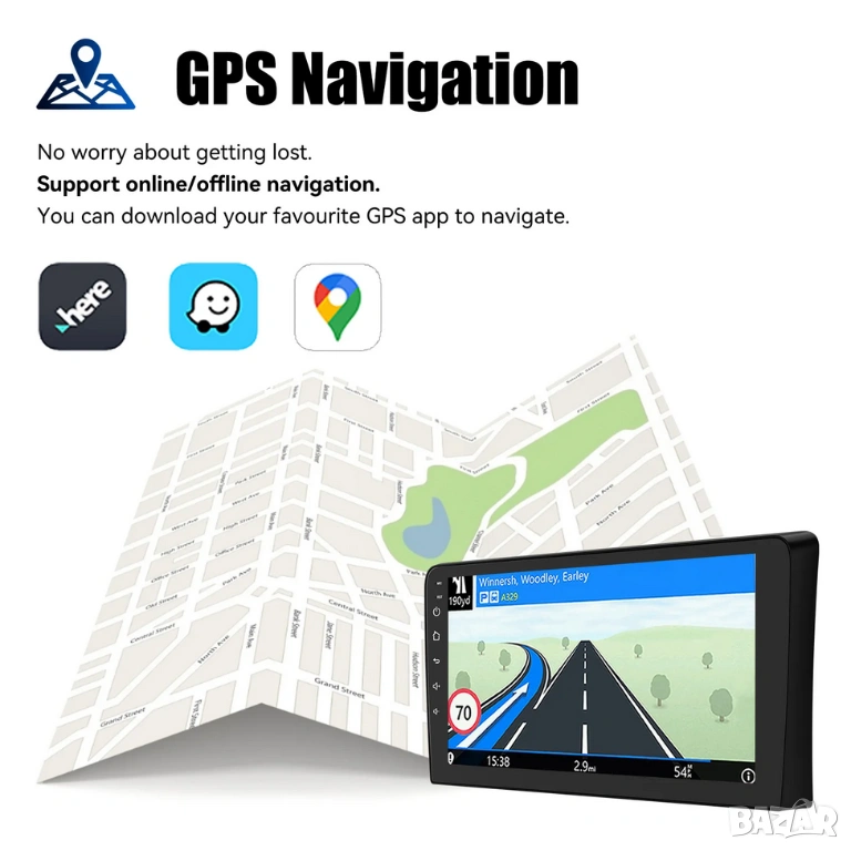 7. Онлайн и офлайн навигация и карти: Инсталирани Google Maps и Waze, имате достъп и до много други.