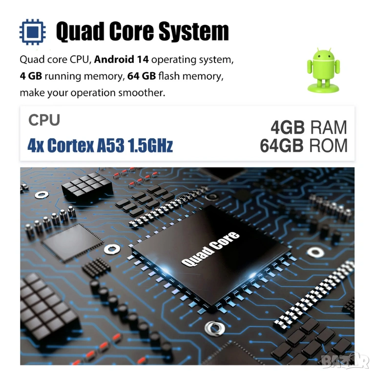 9” 2-DIN мултимедия с Android’15, 4GB/64GB. за