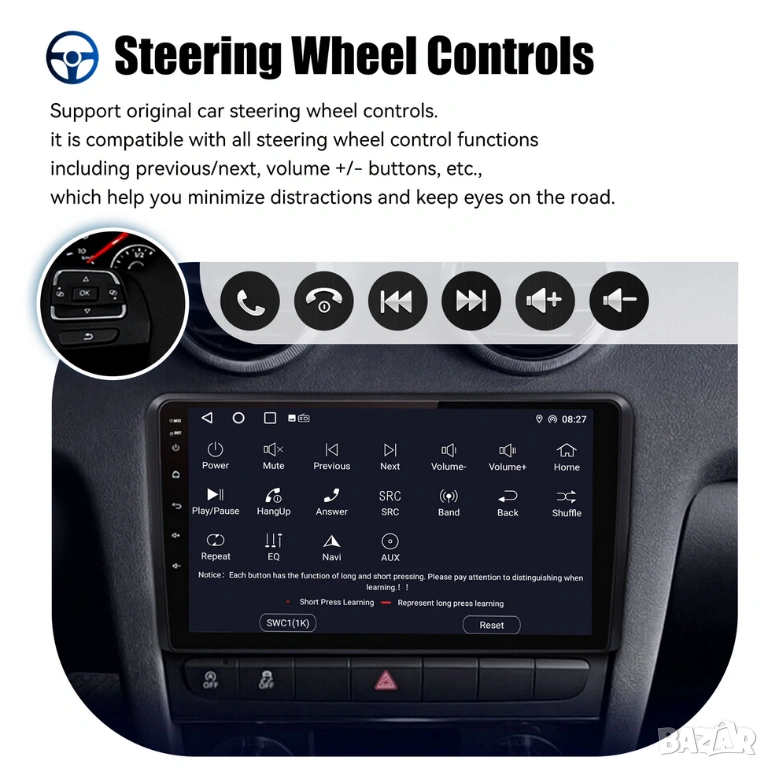 6. Bluetooth: Може да възпроизвеждате стерео музика чрез Bluetooth от телефона си. Вграден микрофон за функция за разговори. Поддръжка за изтегляне на телефонна книга. Поддръжка за търсене в телефонния указател.
