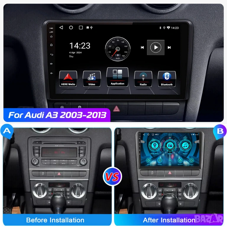 Audi A3 2003-2012 9” 2-DIN мултимедия с Android’15, 4GB/64GB