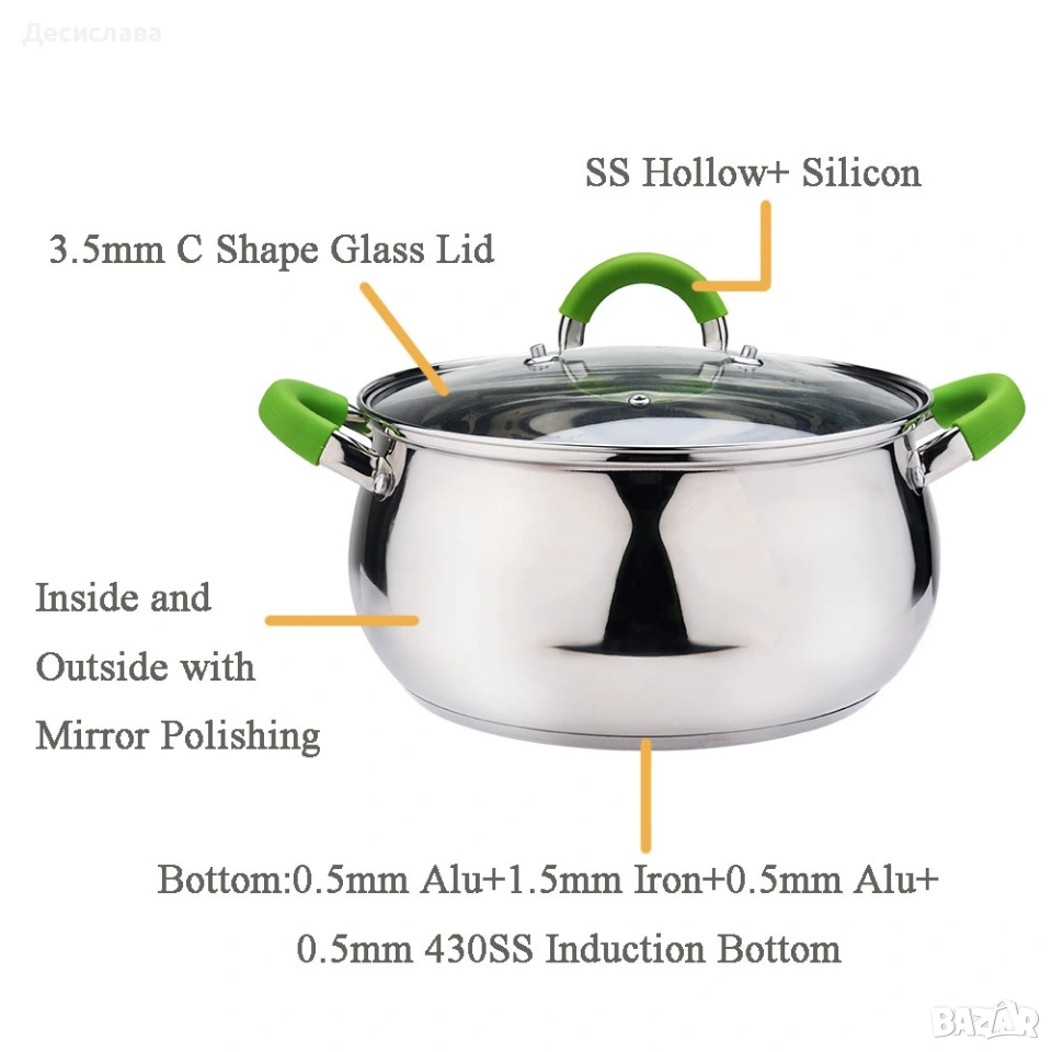 Комплект тенджери Swissgold Alana – 3 броя с капак от неръждаема стомана с 5-слойно капсулно дъно, снимка 1 - Съдове за готвене - 53053831 Комплект тенджери Swissgold Alana – 3 броя с капак от неръждаема стомана с 5-слойно капсулно дъно, снимка 2 - Съдове за готвене - 53053831 Комплект тенджери Swissgold Alana – 3 броя с капак от неръждаема стомана с 5-слойно капсулно дъно, снимка 3 - Съдове за готвене - 53053831 1/3