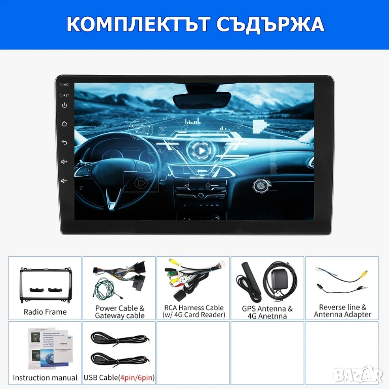9” 2-DIN мултимедия с Android’14 6/128GB за