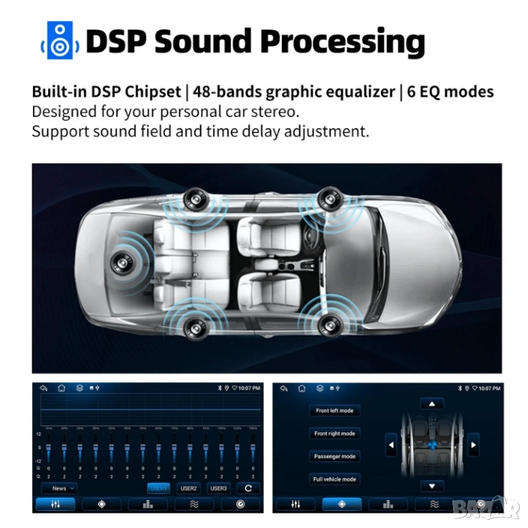 5. Настройки на звука според личните ви предпочитания посредством графичен еквалайзер - аналогов саунд процесор и изместване на звуковия фокус. Поп, рок, джаз, класика, плосък, потребител, глас - множеството опции за персонализиране ви позволяват да адаптирате аудио изживяването по ваш вкус.