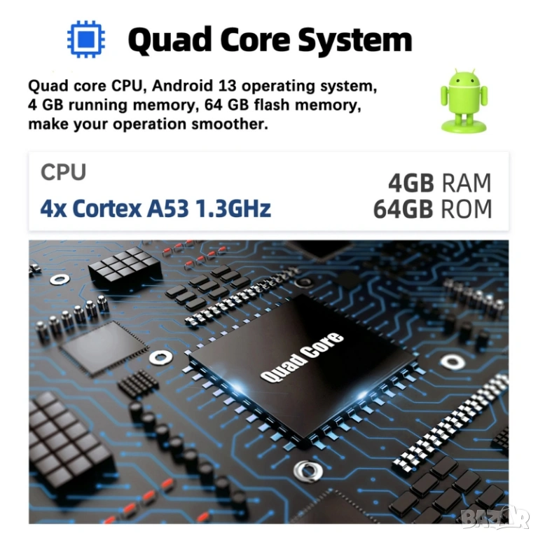 - CPU: Cortex-А53 1.3 Ghz Quad-core