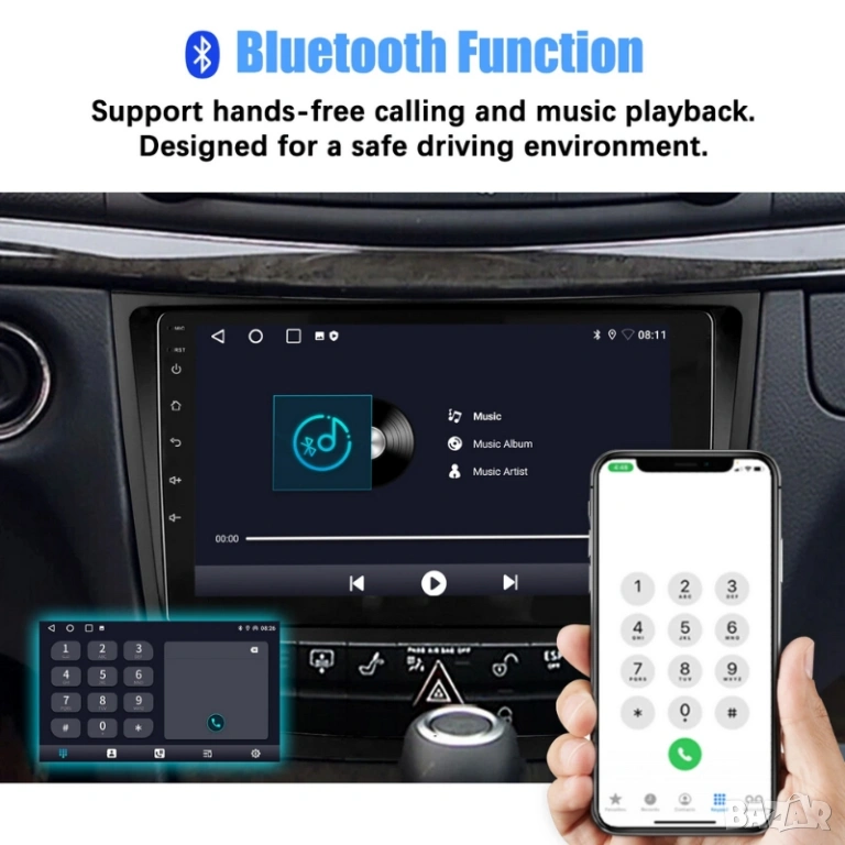 6. Bluetooth: Може да възпроизвеждате стерео музика чрез Bluetooth от телефона си. Вграден микрофон за функция за разговори. Поддръжка за изтегляне на телефонна книга. Поддръжка за търсене в телефонния указател.