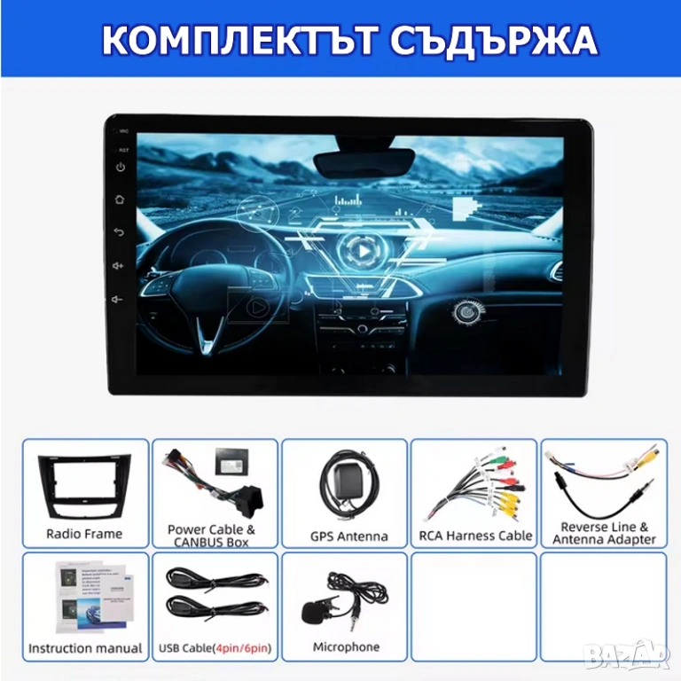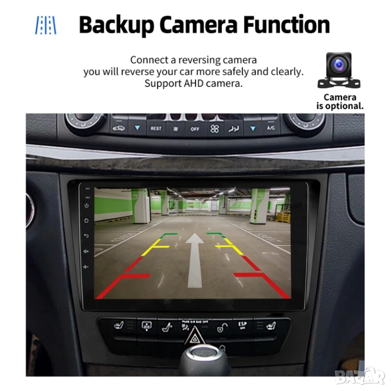 8. Автоматичен обратен изглед за паркиране: Когато колата е на задна предавка, дисплеят автоматично ще премине към изглед на камера за обратно виждане. Възможен е и монтаж на предна камера. Камери се поръчват отделно.