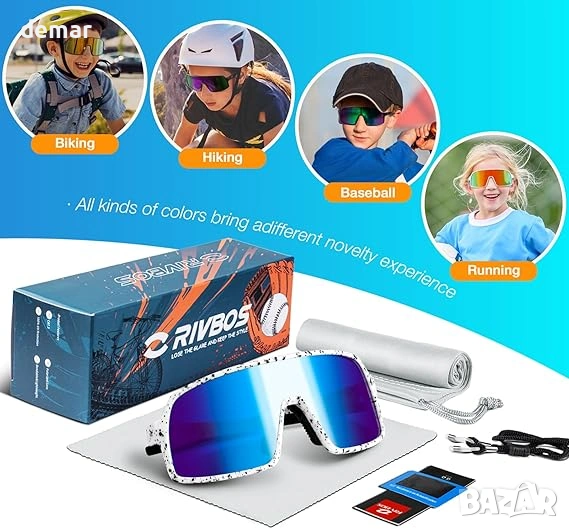 RIVBOS Детски спортни слънчеви очила с поляризирана UV защита