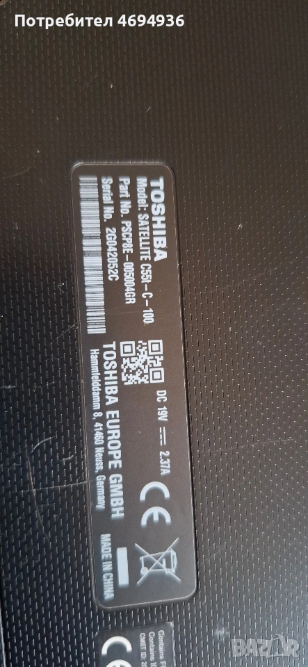 Лаптоп Toshiba Satellite C55-C-тъчскрийн Intel Pentium Quad-Core N3700 (2.40GHz) 8GB → Обява 53054293