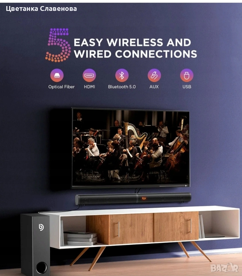 Методи на свързване: HDMI ARC / OPT / Bluetooth 5.0 / AUX / USBLED