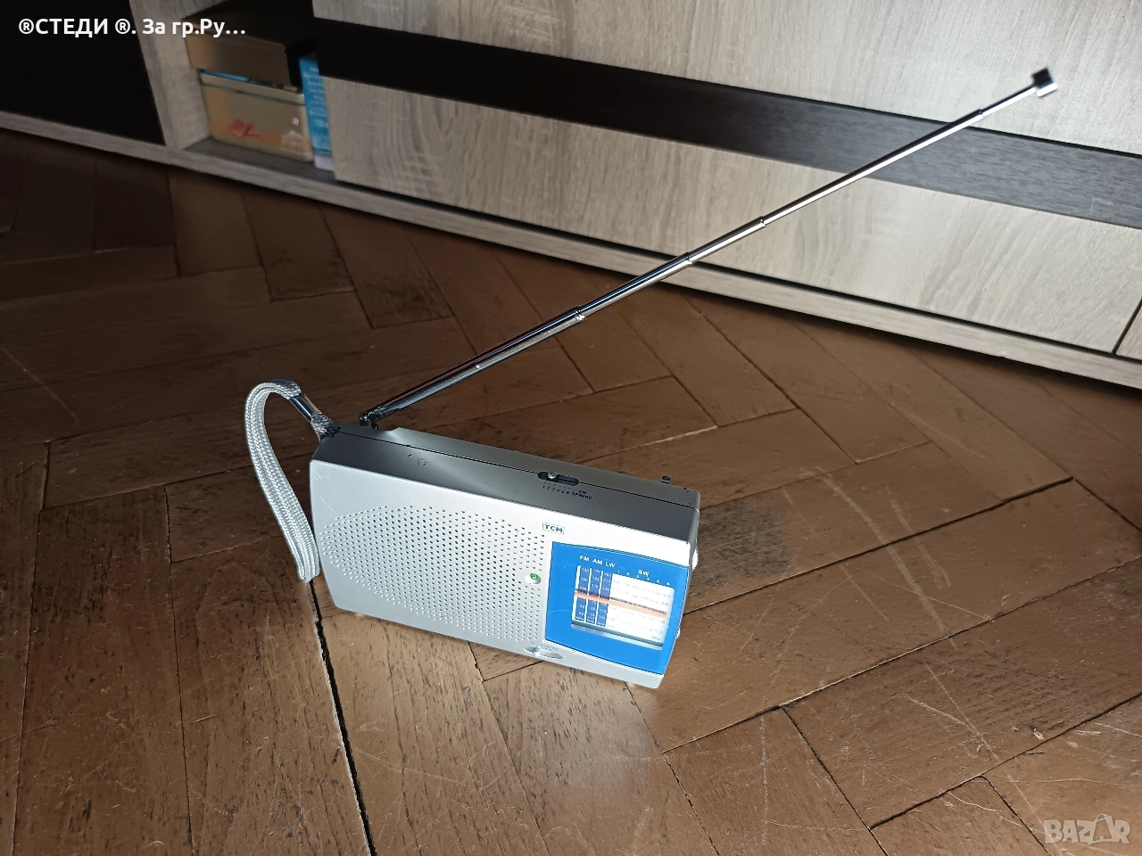 радио Tchibo TCM, сиво, сребристо и синьо. FM AM LW SW.