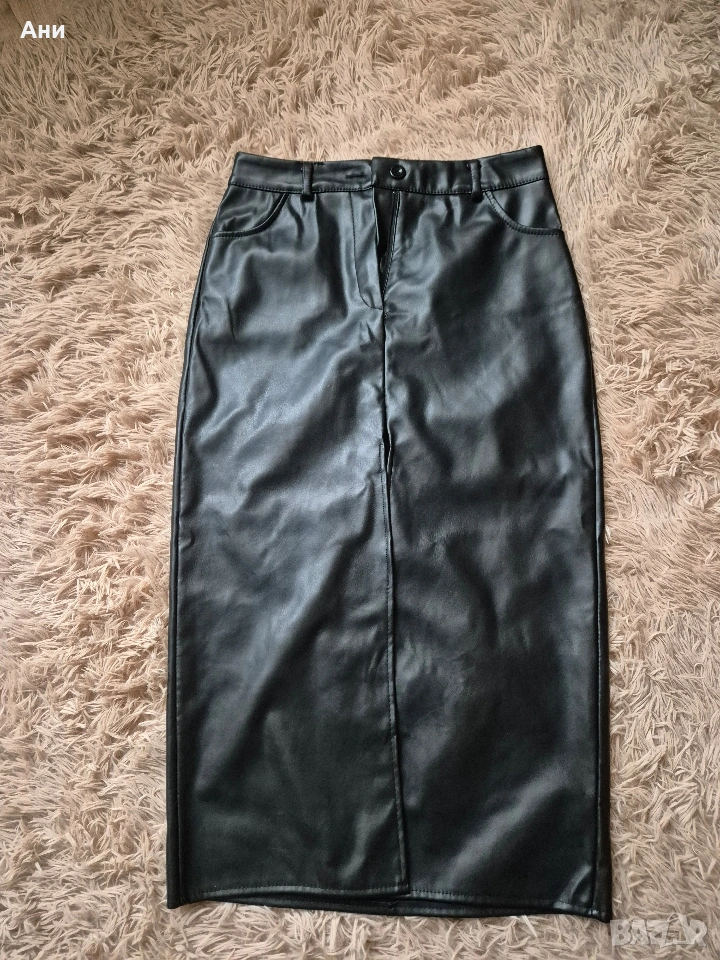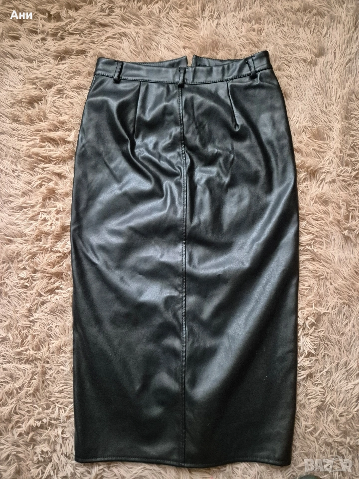 Якето е в отлично състояние,естествена кожа по размер Л но отговаря на М с размери -рамо до рамо 40 см,гръдна обиколка едностранно -46 см и дължина 57 см с подарък пола размер М