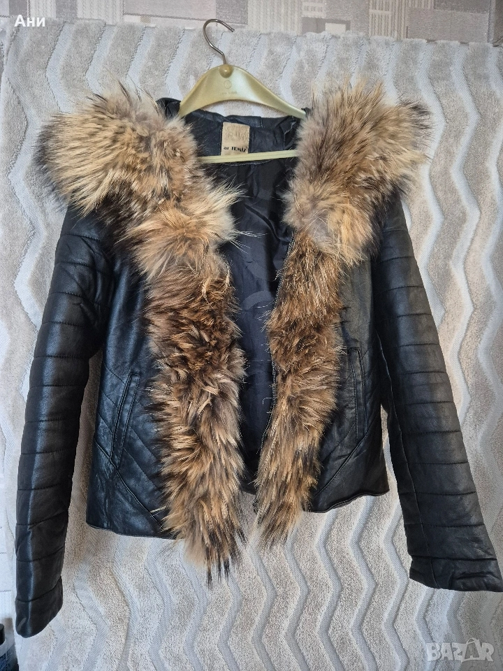 Дамско яке естествена кожа яка лисица + подарък → Обява 53054886